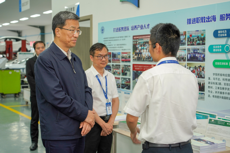 5月23日下午,教育部黨組書(shū)記、部長(zhǎng)懷進(jìn)鵬蒞臨學(xué)院,考察調(diào)研了新能源汽車(chē)產(chǎn)教融合示范園、交通土建智慧檢測(cè)產(chǎn)教融合實(shí)訓(xùn)基地、先進(jìn)艦船模擬器實(shí)訓(xùn)中心、航空實(shí)訓(xùn)基地。