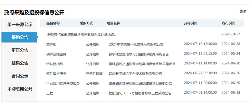 圖4 福建船政交通職業(yè)學(xué)院招標(biāo)采購信息公開