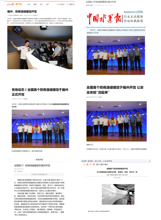 8月8日,由福州海事局和福建船政交通職業(yè)學(xué)院精心打造的全國(guó)首座防商漁碰撞館在福船園正式開館,獲得人民日?qǐng)?bào)、中國(guó)水運(yùn)報(bào)、東南網(wǎng)、新福建、福州晚報(bào)等主流媒體報(bào)道。本次活動(dòng)主要情況報(bào)道如下: