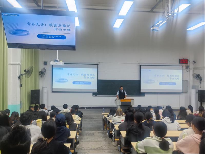 講座緊扣“青春無詐”主題,結(jié)合講師多年金融反詐實踐經(jīng)驗,以“精準(zhǔn)識騙、優(yōu)化管理、防護(hù)普法、升級反詐、反詐急救、踐行反詐”六大板塊為框架展開:從“冒充客服退款”“刷單返利”等學(xué)生群體常見騙局的識別技巧,到校園賬戶安全管理、個人信息保護(hù)的具體方法;從《反電信網(wǎng)絡(luò)詐騙法》等法規(guī)解讀,到遭遇詐騙后的緊急止損流程;再到倡導(dǎo)“全民反詐”理念、鼓勵師生主動參與宣傳,內(nèi)容既具專業(yè)性又貼近日常,為師生織密反詐“知識網(wǎng)”。通過真實案例剖析、結(jié)合學(xué)生的興趣熱點(diǎn)互動,將晦澀的反詐要點(diǎn)轉(zhuǎn)化為易懂的生活指南,現(xiàn)場師生積極提問,氛圍熱烈。