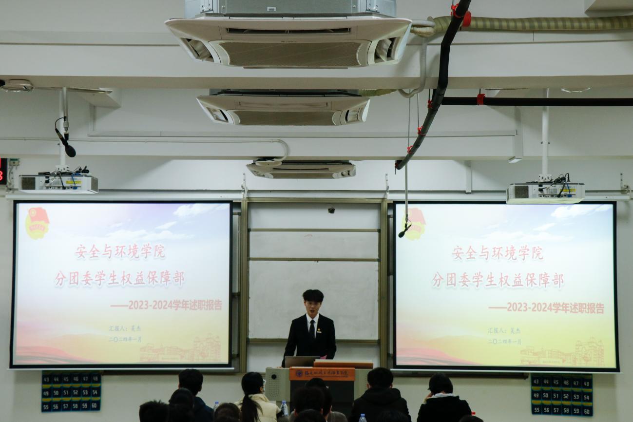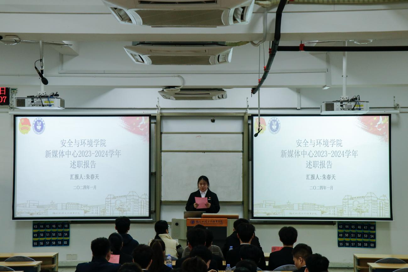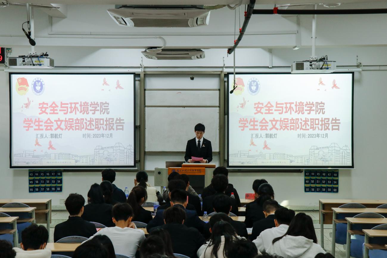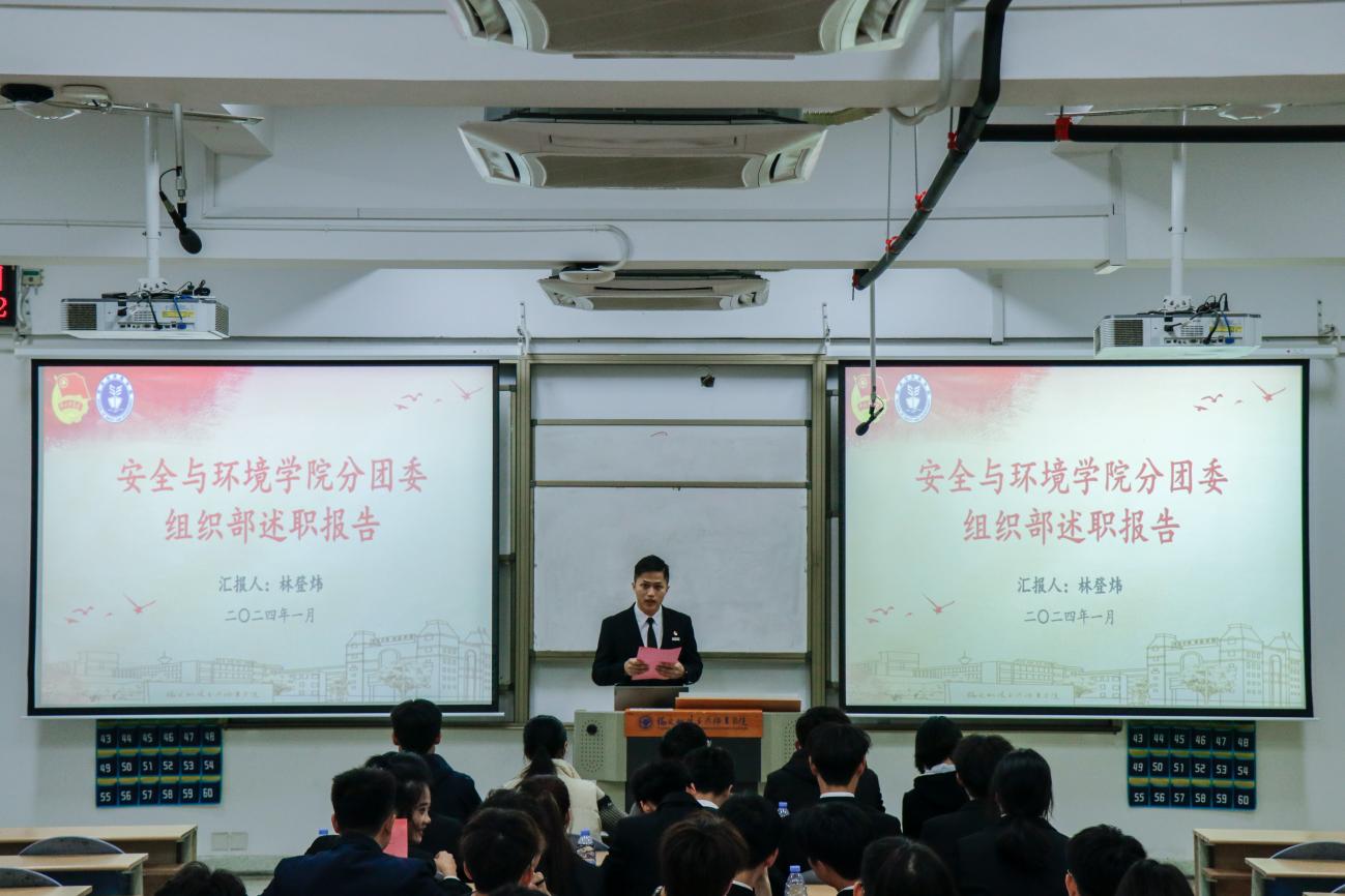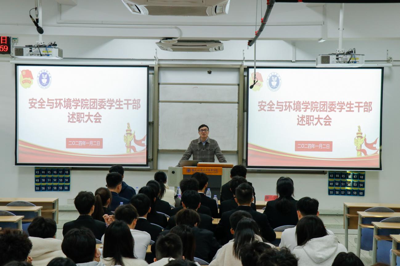 為深入學(xué)習(xí)貫徹習(xí)近平總書記關(guān)于青年工作的重要思想,進(jìn)一步推動(dòng)學(xué)生組織建設(shè),提高學(xué)生干部綜合素質(zhì),總結(jié)本學(xué)年工作實(shí)效,規(guī)劃下一年度工作,2024年1月2日安全與環(huán)境學(xué)院在創(chuàng)新樓201教室組織召開團(tuán)委學(xué)生干部述職大會(huì)。安全與環(huán)境學(xué)院團(tuán)委書記彭志允、團(tuán)委組織委員張曉珊、團(tuán)委宣傳委員李花、輔導(dǎo)員牟鵬飛、輔導(dǎo)員何瀚深蒞臨本次會(huì)議。