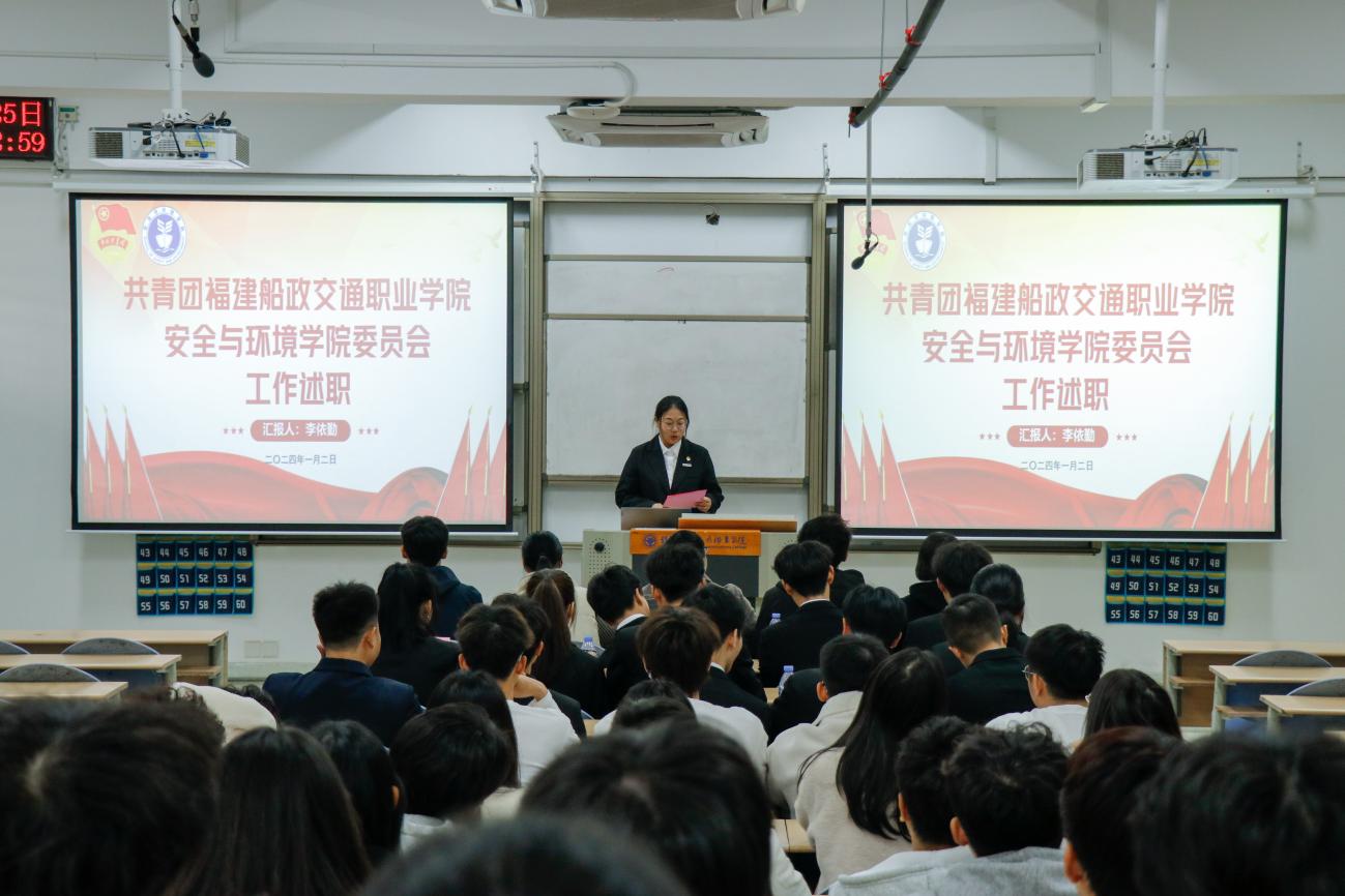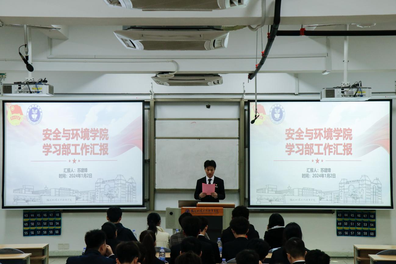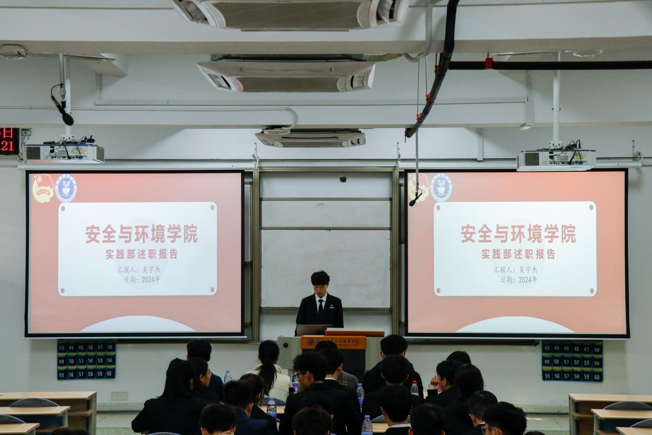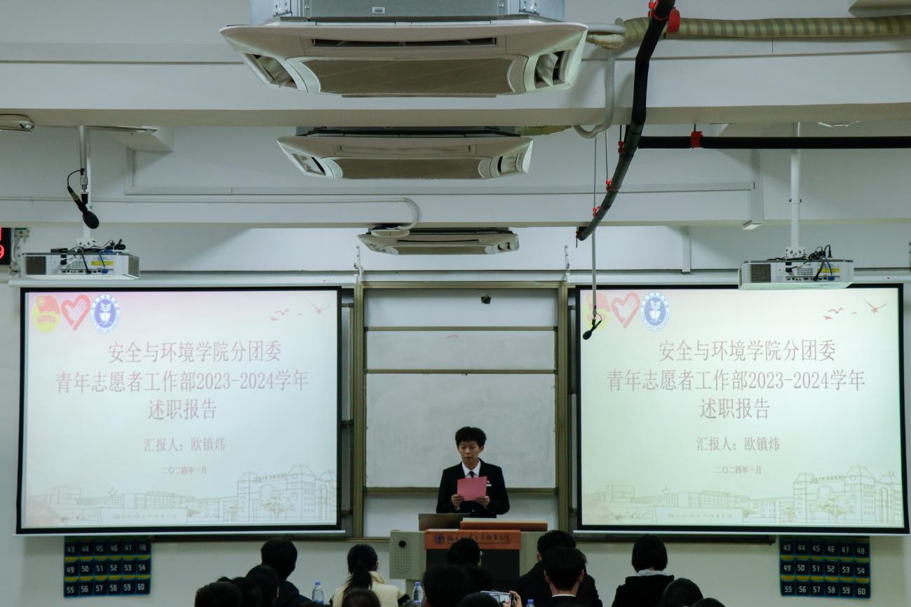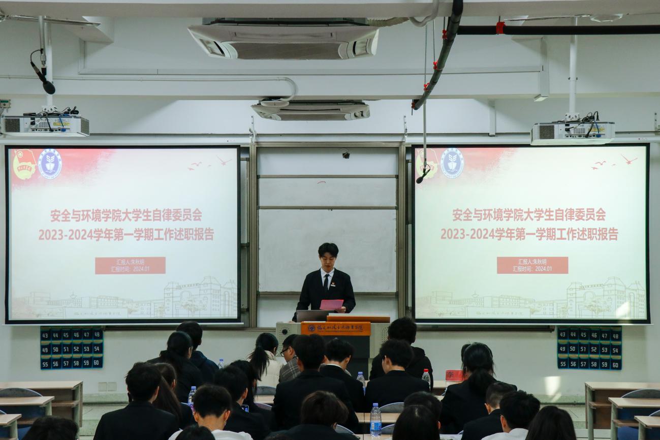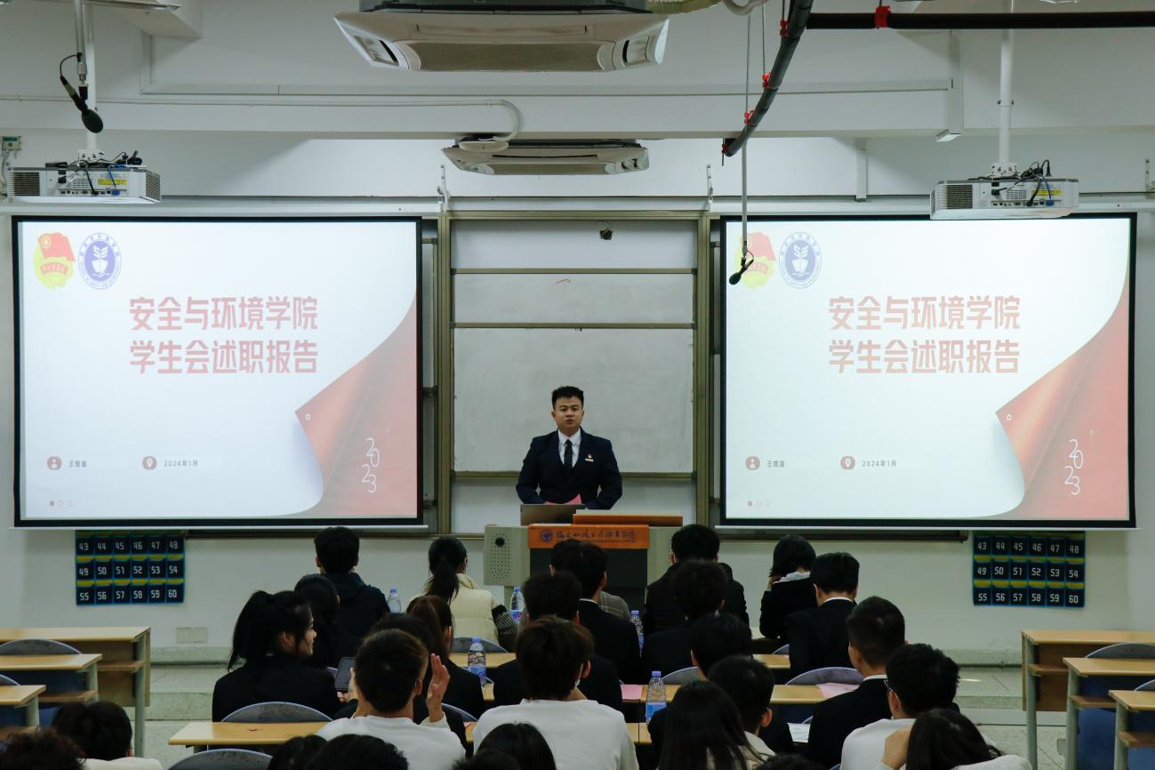為深入學(xué)習(xí)貫徹習(xí)近平總書記關(guān)于青年工作的重要思想,進(jìn)一步推動(dòng)學(xué)生組織建設(shè),提高學(xué)生干部綜合素質(zhì),總結(jié)本學(xué)年工作實(shí)效,規(guī)劃下一年度工作,2024年1月2日安全與環(huán)境學(xué)院在創(chuàng)新樓201教室組織召開團(tuán)委學(xué)生干部述職大會(huì)。安全與環(huán)境學(xué)院團(tuán)委書記彭志允、團(tuán)委組織委員張曉珊、團(tuán)委宣傳委員李花、輔導(dǎo)員牟鵬飛、輔導(dǎo)員何瀚深蒞臨本次會(huì)議。