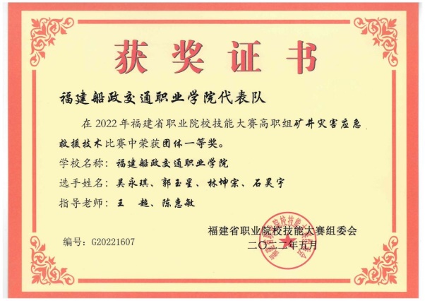 應(yīng)急救援技術(shù)專業(yè)學(xué)生參加國家和省級救援類競賽獲獎證書
