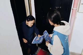 志愿者們走進社區(qū)里分發(fā)反詐宣傳單,通過宣傳單的專業(yè)資料與詳細講解,拓寬居民的反詐騙知識。志愿者們還入戶宣傳,提高反詐安全宣傳的普及度,從而增強居民們防詐騙安全意識。