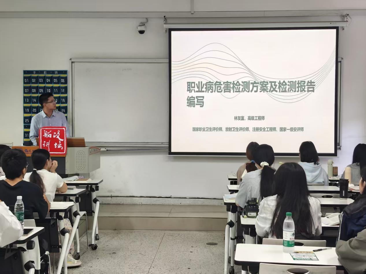 10月31日上午,我院特邀中檢集團康泰安全科技有限公司林友富高級工程師開展“職業(yè)病危害檢測方案及檢測報告編寫”專題講座。