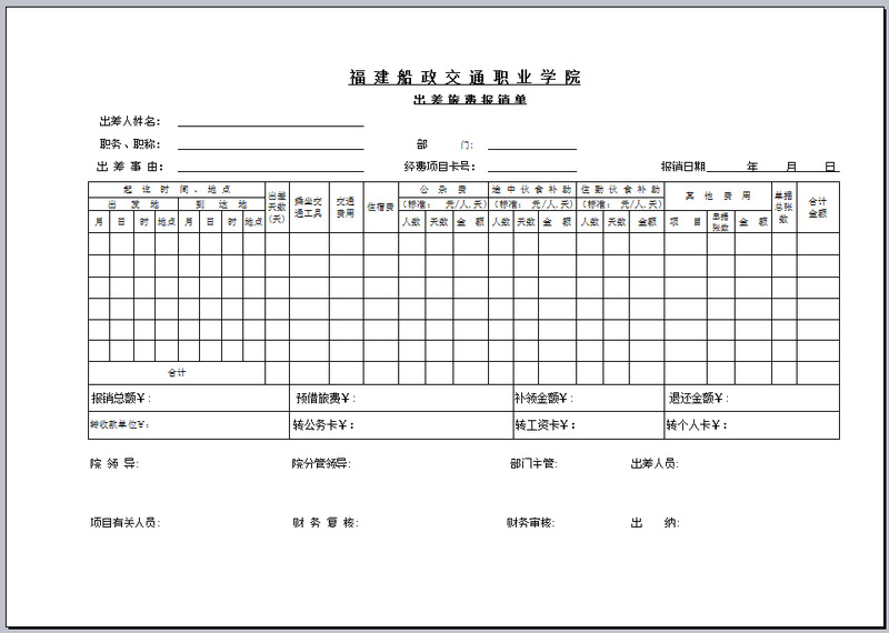 (出差旅費報銷單)