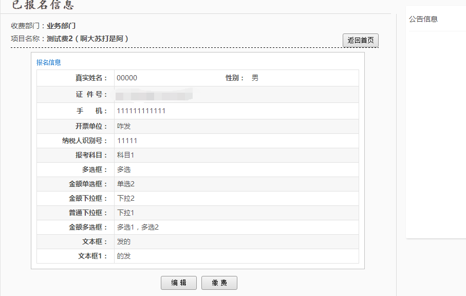 8)備注導入的繳費人員在繳費時能看到備注信息,以供確認。