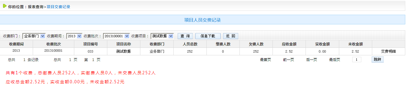 選擇收費項目,輸入人員姓名、編號、身份證號以及支付狀態(tài),點擊