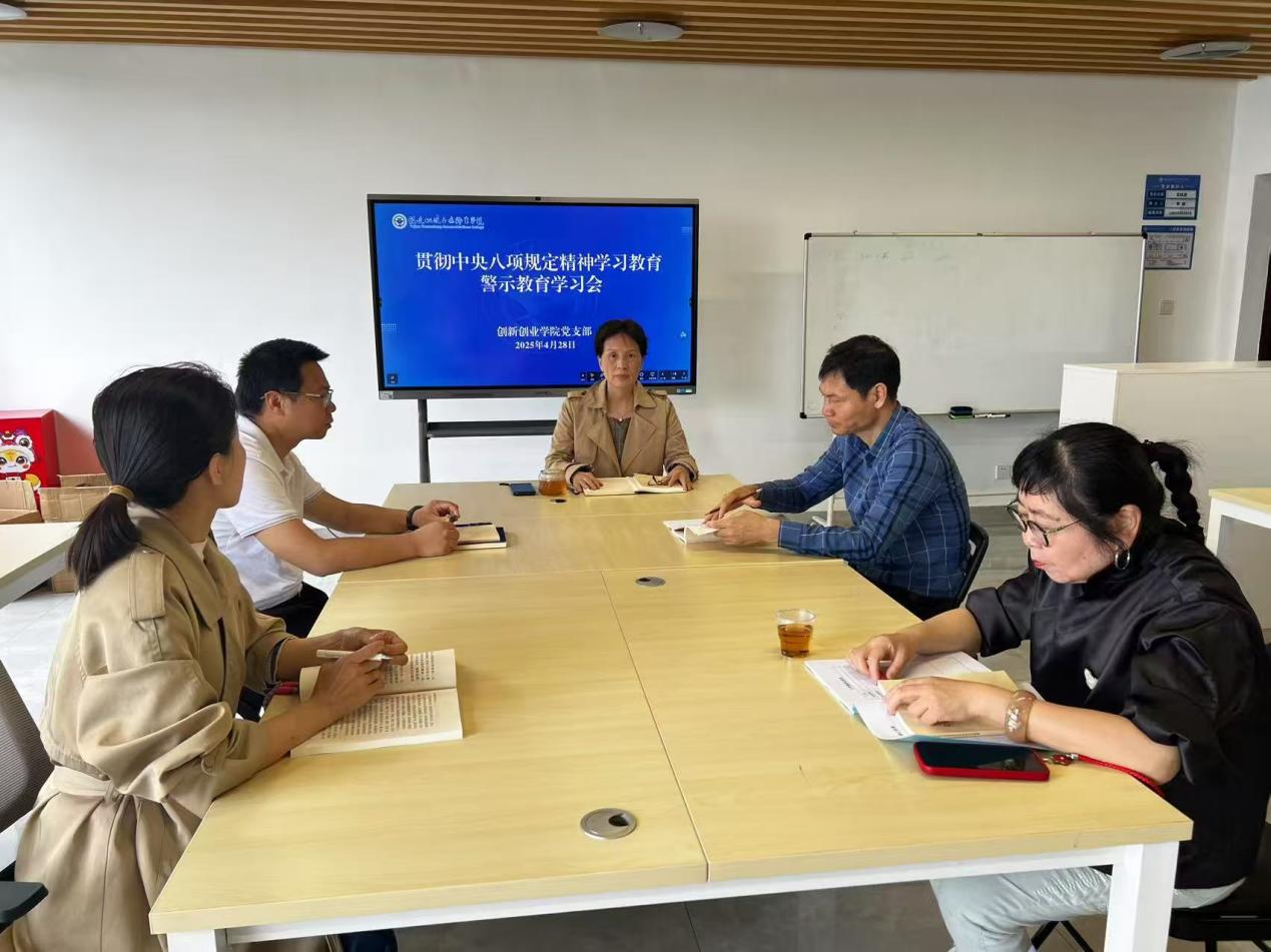 創(chuàng)新創(chuàng)業(yè)學(xué)院于4月28日在藝新樓南樓815召開深入貫徹中央八項規(guī)定精神學(xué)習(xí)教育警示教育會,全體黨員及全院教職員工參加。