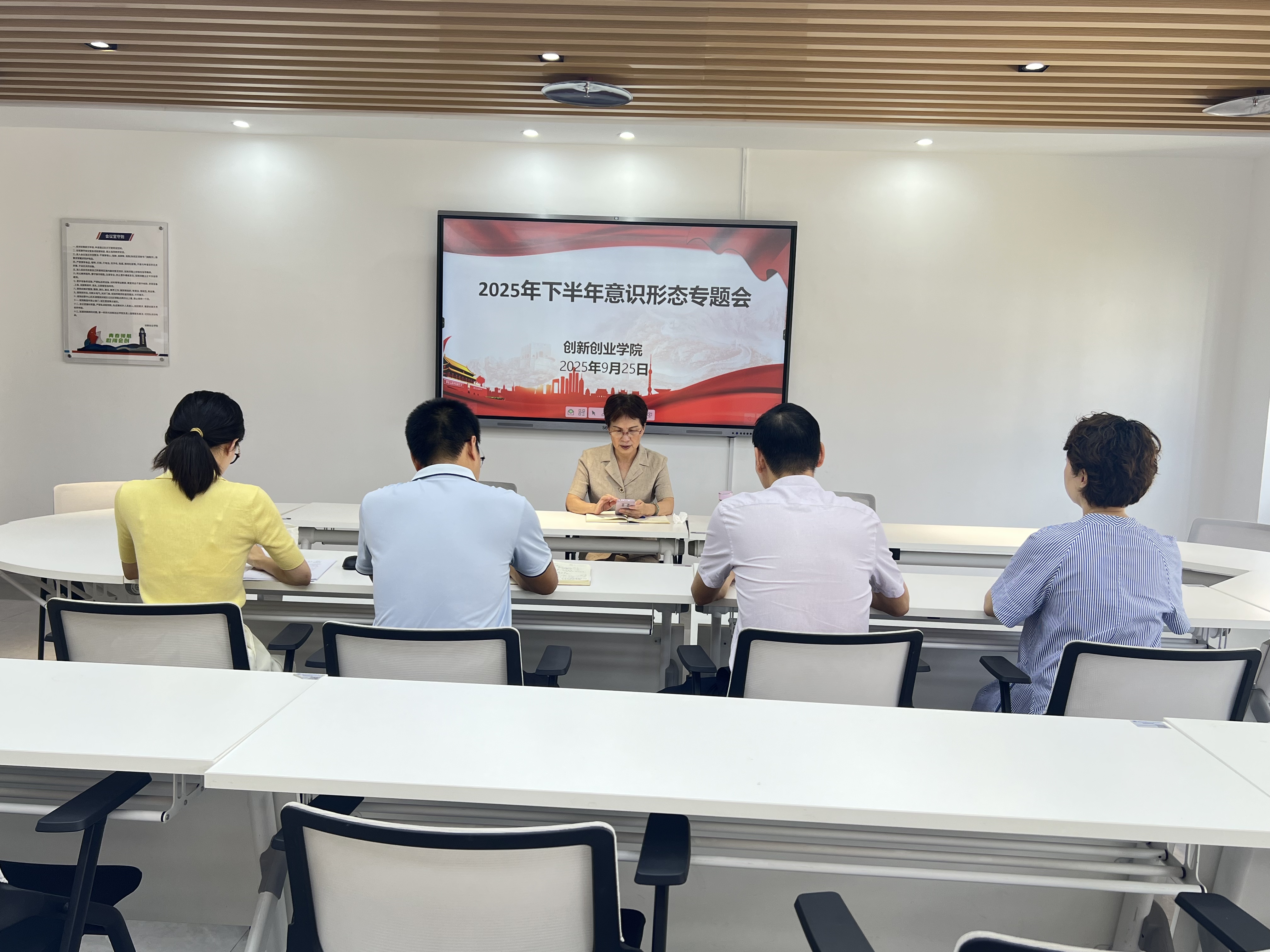 創(chuàng)新創(chuàng)業(yè)學(xué)院于2025年9月22日在藝新樓815召開了下半年意識(shí)形態(tài)專題會(huì),會(huì)議由學(xué)院院長林霞主持,全體教職工參加。