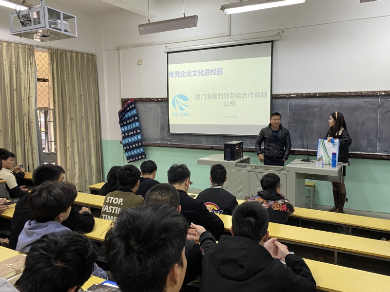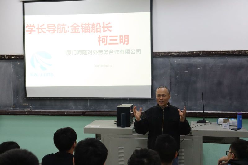 3月23日下午,廈門海隆對外勞務合作有限公司副總經(jīng)理林凱凌、船管部經(jīng)理柯三明、法務專員張悅文一行三人來到航海學院為2022屆航海類(航海技術專業(yè)、輪機工程技術專業(yè))學生做企業(yè)文化宣講。