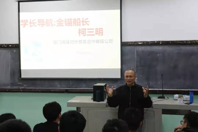 柯三明船長(zhǎng)現(xiàn)任廈門海隆對(duì)外勞務(wù)合作有限公司船管部經(jīng)理,從事遠(yuǎn)洋教學(xué)實(shí)習(xí)船工作10多年,曾在廈門輪總、廣州遠(yuǎn)洋、臺(tái)塑海運(yùn)等國(guó)內(nèi)外知名船東做過(guò)集裝箱船、散貨船等工作。曾榮獲交通部中國(guó)海員工會(huì)頒發(fā)的“金錨獎(jiǎng)”和廈門輪船總公司頒發(fā)的“個(gè)人安全杰出貢獻(xiàn)獎(jiǎng)”;多次被福建交通運(yùn)輸集團(tuán)、福建海運(yùn)集團(tuán)、廈門輪船總公司評(píng)為“安全生產(chǎn)先進(jìn)工作者”。在場(chǎng)學(xué)生深受鼓舞,學(xué)生們?cè)谛v會(huì)上對(duì)船員發(fā)展、船員求職就業(yè)等相關(guān)問(wèn)題提出疑問(wèn)。