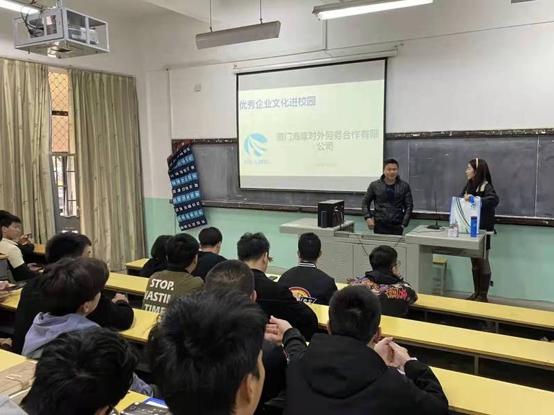 3月23日下午,廈門海隆對(duì)外勞務(wù)合作有限公司副總經(jīng)理林凱凌、船管部經(jīng)理柯三明、法務(wù)專員張悅文一行三人來(lái)到航海學(xué)院為2022屆航海類(航海技術(shù)專業(yè)、輪機(jī)工程技術(shù)專業(yè))學(xué)生做企業(yè)文化宣講。