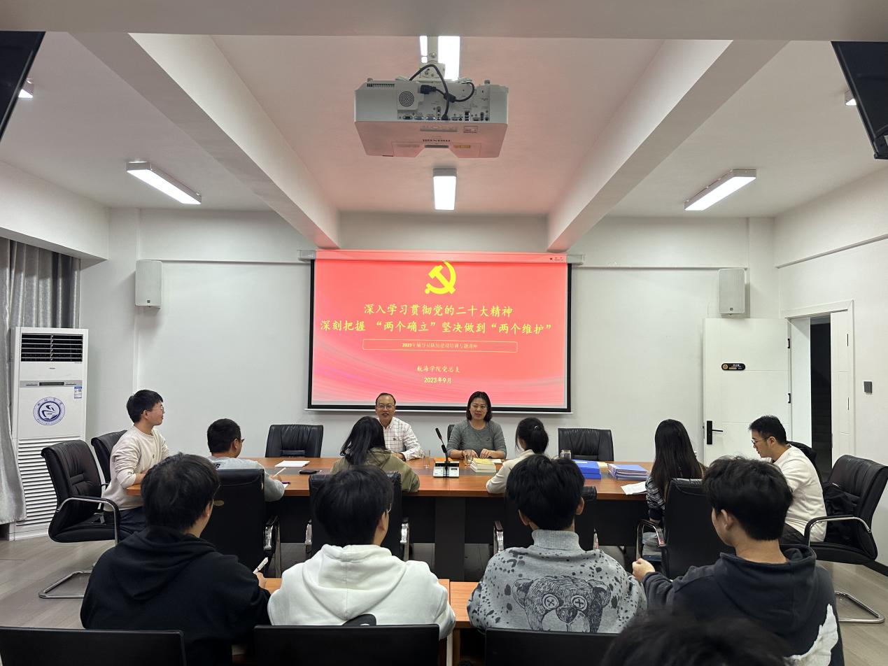 為了深入學(xué)習(xí)貫徹黨的二十大精神,切實(shí)將學(xué)習(xí)成果轉(zhuǎn)化為推動(dòng)學(xué)生工作的強(qiáng)大動(dòng)力。918日,航海學(xué)院黨總支組織開(kāi)展深入學(xué)習(xí)貫徹黨的二十大精神,深刻把握 “兩個(gè)確立”堅(jiān)決做到“兩個(gè)維護(hù)”專(zhuān)題講座,特邀黨總支書(shū)記江文作專(zhuān)題授課,會(huì)議由黨總支副書(shū)記朱寶杉主持,全體輔導(dǎo)員、團(tuán)學(xué)干部參加本次專(zhuān)題學(xué)習(xí)。