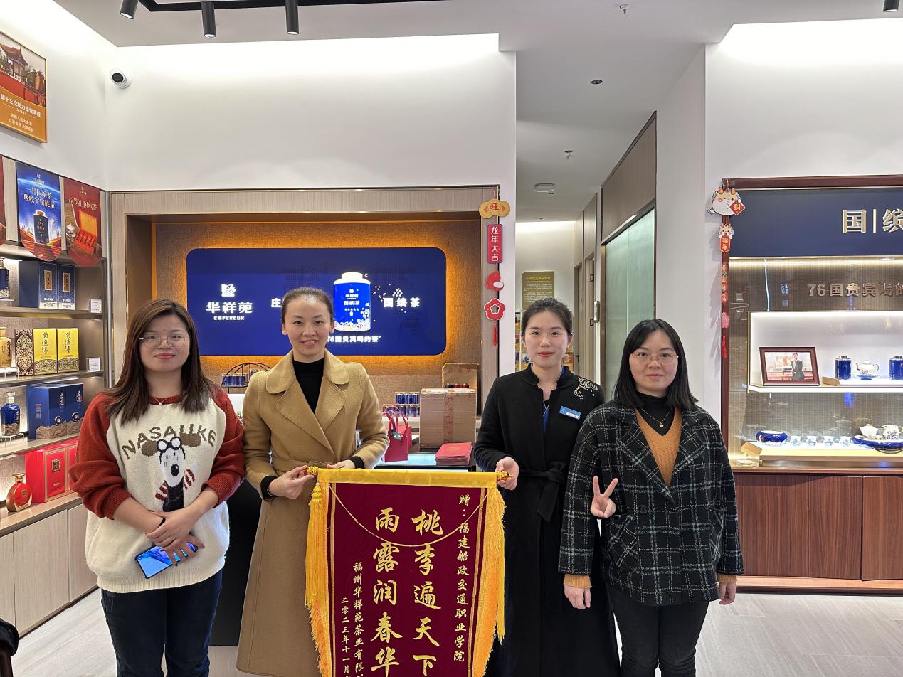 2023年12月27日,國際郵輪乘務(wù)教研室陳華和黃娜琴老師赴福建華祥苑茶業(yè)有限公司巡查學生頂崗實習情況。兩位老師了解了企業(yè)發(fā)展的近況,來到實習生林雨欣的工作場所深入了解學生的工作和生活情況,同時鼓勵實習生要增強對工作的興趣,抓住機會多動手實踐,為職業(yè)發(fā)展夯實基礎(chǔ)。兩位老師在與學生的交流溝通中,叮囑學生要遵守企業(yè)的規(guī)章制度,以準職業(yè)人的身份,把握實習機會,充分鍛煉自己,為將來步入社會打牢基礎(chǔ)。企業(yè)人事總監(jiān)薛蘭蘭女士為我院授予錦旗--桃李遍天下,雨露潤春華。