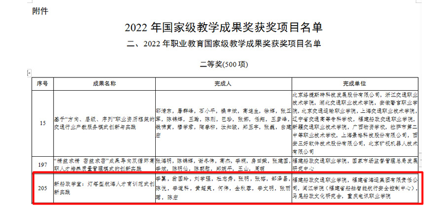 724日,教育部公布了2022年國家級(jí)教學(xué)成果獎(jiǎng)獲獎(jiǎng)項(xiàng)目名單。由我校航海學(xué)院主持申報(bào)的《新船政學(xué)堂:燈塔型航海人才育訓(xùn)范式創(chuàng)新實(shí)踐》教學(xué)成果獲得二等獎(jiǎng)。