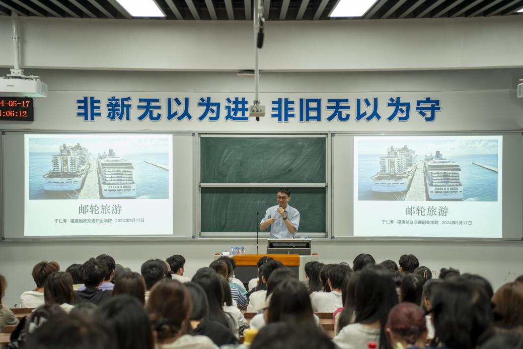 2024年5月18日,集美大學(xué)工商管理學(xué)院于仁壽教授于我院舉辦了一場主題為“兩岸郵輪旅游產(chǎn)業(yè)發(fā)展分析”的講座。此次講座特別針對22級國際郵輪乘務(wù)管理專業(yè)的學(xué)生們,旨在通過專業(yè)視角,深入探討兩岸郵輪旅游產(chǎn)業(yè)的現(xiàn)狀、挑戰(zhàn)與發(fā)展趨勢。