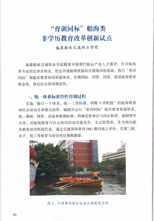 《“育訓(xùn)同標(biāo)”船海類非學(xué)歷教育改革創(chuàng)新試點(diǎn)》項(xiàng)目基于我校航海技術(shù)“雙高”專業(yè)群優(yōu)勢(shì)資源和育人成果,針對(duì)航海人才培養(yǎng)和社會(huì)培訓(xùn)與行業(yè)需求脫節(jié)、育訓(xùn)情境缺乏、質(zhì)量監(jiān)控不足、評(píng)價(jià)考核手段單一、師資能力偏弱等問(wèn)題,從課程內(nèi)容、教學(xué)活動(dòng)、過(guò)程監(jiān)控、考核評(píng)價(jià)和科技服務(wù)等方面進(jìn)行系統(tǒng)重構(gòu),執(zhí)行“育訓(xùn)同標(biāo)”海船員教育培訓(xùn)質(zhì)量體系,實(shí)現(xiàn)同標(biāo)、同管、同質(zhì),強(qiáng)化航海教育職業(yè)性,提升社會(huì)培訓(xùn)規(guī)范性。