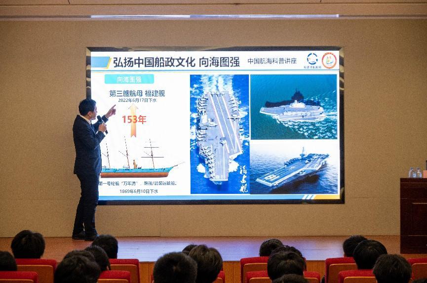 為弘揚中國船政文化,增強青年學(xué)子的海洋意識與愛國情懷,2025年2月27日,中國航??破沾笫沽殖魃W臨我校航海學(xué)院,開展了一場主題為“弘揚中國船政文化 向海圖強”的科普講座。