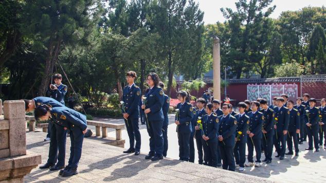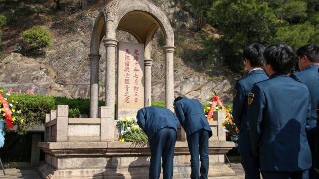 清明時(shí)節(jié),松柏凝翠。4月3日,福建船政交通職業(yè)學(xué)院航海學(xué)院師生代表在航海學(xué)院黨總支副書記肖秀林、航海學(xué)院團(tuán)委副書記陳林泉的帶領(lǐng)下,赴福州馬江海戰(zhàn)紀(jì)念館開展“步履鏗鏘祭英烈,青春接力續(xù)榮光”主題清明祭掃活動(dòng)。