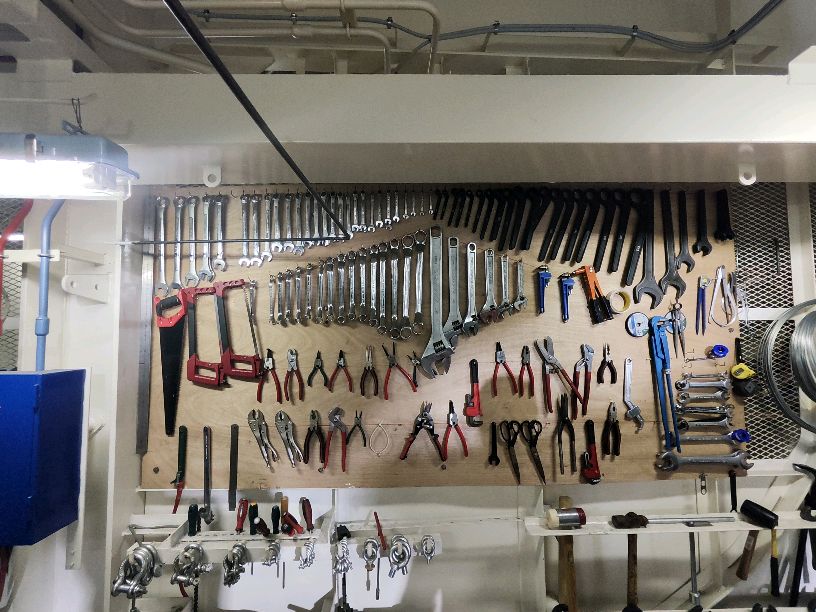 前三個(gè)月是跟著銅匠師傅干白班,剛開(kāi)始一切都不熟悉,機(jī)艙同事們熱情的給我介紹著機(jī)艙的布局,工作間的工具以及每層的設(shè)備,工作間的工具琳瑯滿目,同事們也耐心的教我使用的方法,通過(guò)時(shí)間的推移,我也逐漸成長(zhǎng)起來(lái),在這前三個(gè)月里學(xué)會(huì)了機(jī)工業(yè)務(wù)。