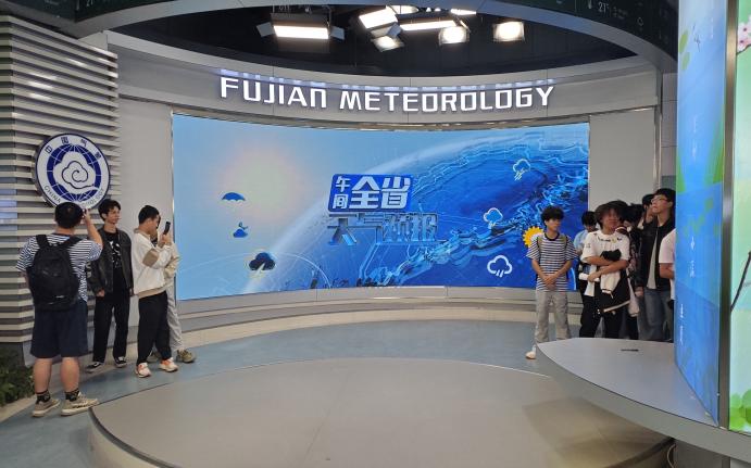 二是新開(kāi)放氣象服務(wù)中心參觀。同學(xué)們了解到氣象不僅可以預(yù)報(bào)天氣,還可以極大地賦能農(nóng)業(yè)、能源開(kāi)發(fā)等行業(yè)產(chǎn)業(yè);此外重點(diǎn)走進(jìn)中心內(nèi)的媒體直播室,直觀了解福建省氣象臺(tái)的氣象傳播工作。福建省氣象臺(tái)不僅成功運(yùn)營(yíng)“福建天氣”人氣媒體賬號(hào),還開(kāi)發(fā)并有效運(yùn)營(yíng)了集實(shí)時(shí)天氣預(yù)報(bào)、科普等功能于一體的“知天氣”APP。氣象服務(wù)中心的參觀讓同學(xué)們對(duì)氣象工作的“服務(wù)端”有了更全面的認(rèn)知,同時(shí)展現(xiàn)出了福建省氣象臺(tái)從內(nèi)容產(chǎn)出到技術(shù)開(kāi)發(fā)的氣象服務(wù)的專業(yè)性。此外,也體現(xiàn)了政府職能部門(mén)敢于跳出傳統(tǒng)氣象工作模式的局限,以與時(shí)俱進(jìn)的理念主動(dòng)開(kāi)拓創(chuàng)新路徑,推動(dòng)氣象預(yù)報(bào)以更鮮活、更貼近生活的形式走進(jìn)大眾視野,有效提升了氣象科普的傳播覆蓋面與實(shí)際效能。