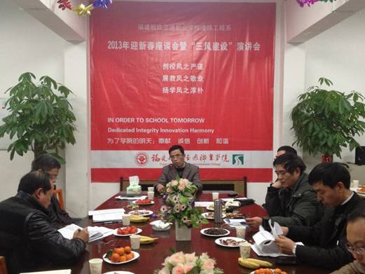為扎實(shí)有效推進(jìn)我院“三風(fēng)建設(shè)”工作,總結(jié)交流工作經(jīng)驗(yàn),1月25日下午, 道路工程系全體教師在8號(hào)樓二樓會(huì)議室召開2013年迎新春 “三風(fēng)建設(shè)”演講會(huì)。