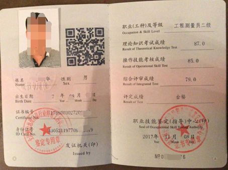 工程測量員證書樣例