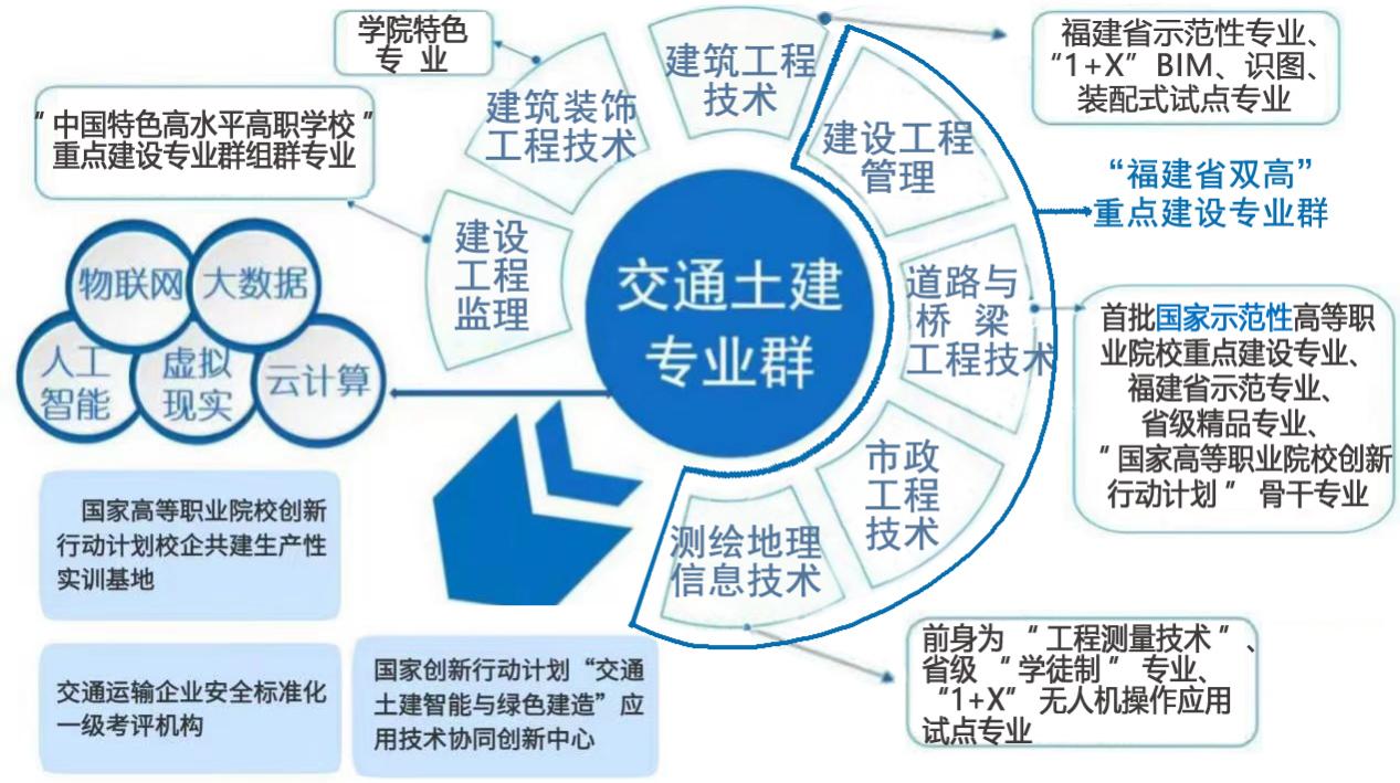 目前,土木工程學(xué)院招生的專業(yè)有道路與橋梁工程技術(shù)、市政工程技術(shù)、建設(shè)工程監(jiān)理、測(cè)繪與地理信息技術(shù)、建筑工程技術(shù)、建設(shè)工程管理、建筑裝飾工程技術(shù)等7個(gè)專業(yè)。其中,道路與橋梁工程技術(shù)是首批國(guó)家示范性高等職業(yè)院校建設(shè)計(jì)劃中央財(cái)政重點(diǎn)支持建設(shè)的專業(yè)(簡(jiǎn)稱“國(guó)家示范校重點(diǎn)專業(yè)”)、國(guó)家創(chuàng)新發(fā)展行動(dòng)計(jì)劃骨干專業(yè)、福建省示范專業(yè)、福建省精品專業(yè),“福建省雙高”重點(diǎn)建設(shè)專業(yè)群的核心專業(yè),2017年通過(guò)IEET國(guó)際認(rèn)證;建設(shè)工程監(jiān)理專業(yè)是“中國(guó)特色高水平高職學(xué)校與高水平專業(yè)建設(shè)計(jì)劃”(簡(jiǎn)稱“國(guó)家雙高”)高水平專業(yè)群的組群專業(yè);市政工程技術(shù)、測(cè)繪與地理信息技術(shù)、建設(shè)工程管理專業(yè)是“福建省雙高”重點(diǎn)建設(shè)專業(yè)群(道路與橋梁工程技術(shù)專業(yè)群)的組群專業(yè);建筑工程技術(shù)是福建省示范專業(yè);建筑裝飾工程技術(shù)專業(yè)為學(xué)校特色專業(yè)。