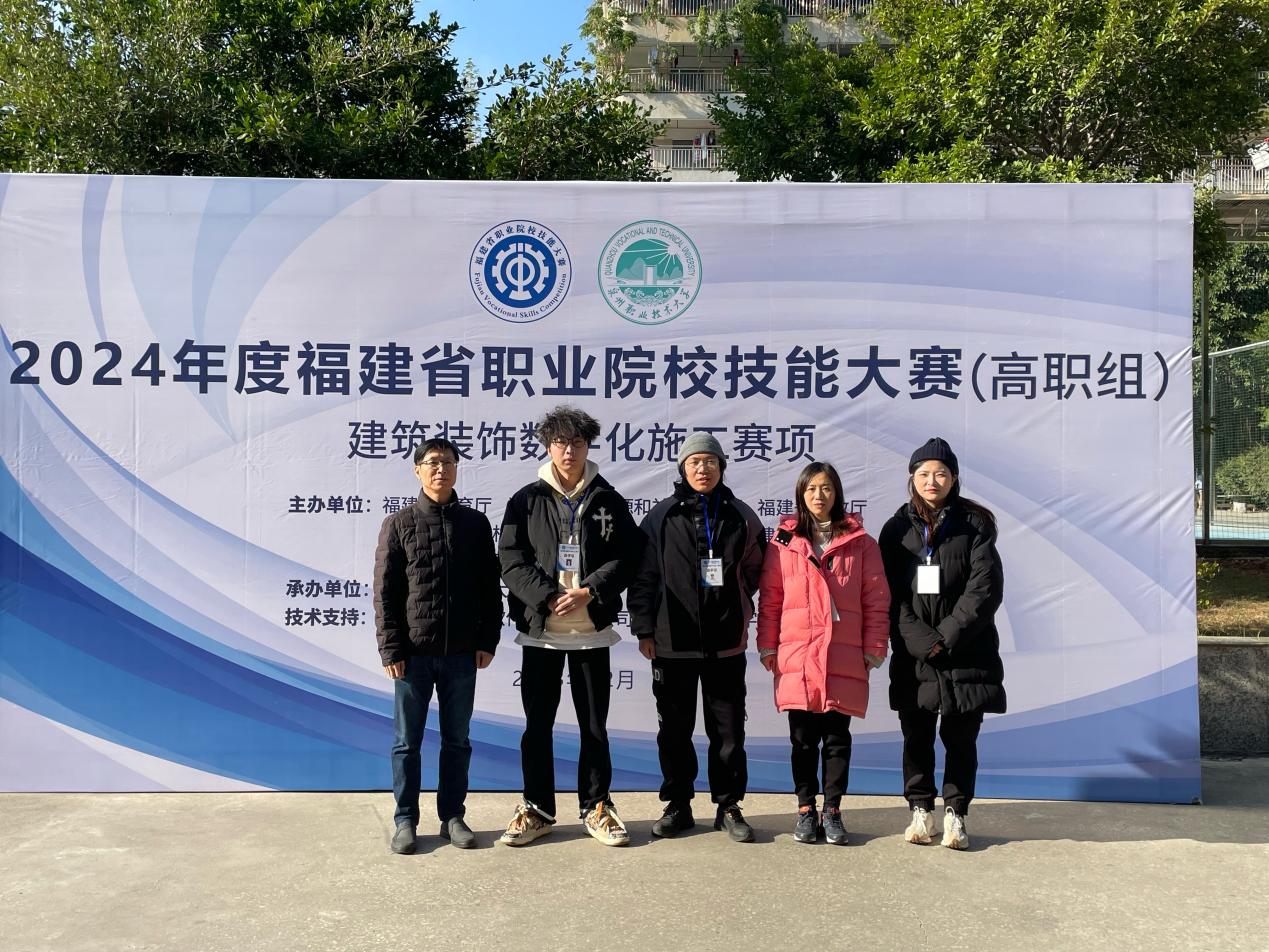 1222日至24日, 2024年福建省職業(yè)院校技能大賽(高職組)建筑裝飾數(shù)字化施工賽項在泉州職業(yè)技術(shù)大學(xué)舉行。來自福建省職業(yè)院校的25支代表隊,75名師生選手參賽同臺競技。我校參賽隊伍由土木工程學(xué)院盧娜(教師)和葉浩錦(學(xué)生)、謝昊霖(學(xué)生)組成師生參賽團隊。我院師生團隊扎實奮戰(zhàn),榮獲省賽二等獎。