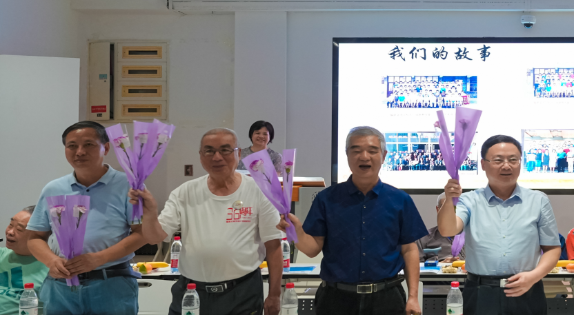 周志堅(jiān)、歐金觀、鄭益民等退休老教師,一一與校友們分享了在學(xué)校工作時(shí)的美好回憶,并給校友們送上美好祝福。校友也給他們尊敬的老師們獻(xiàn)上鮮花,祝愿老師們身體健康。