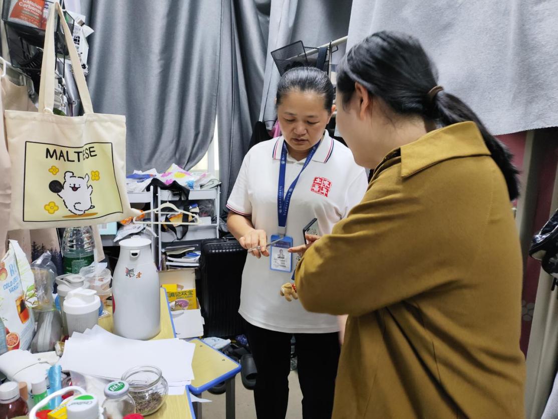 為貫徹落實學校有關(guān)校園安全工作精神,進一步排查并消除宿舍安全隱患,維護校園安全穩(wěn)定。2024年5月24日,學院黨總支副書記任穎卿帶領(lǐng)全體輔導員走進福航園學生宿舍,開展學生宿舍安全專項檢查工作。