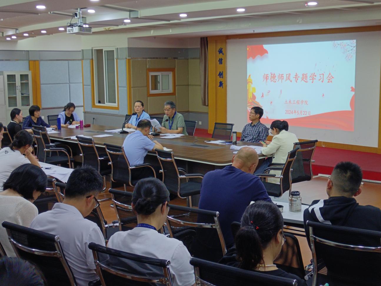 為進(jìn)一步加強(qiáng)師德師風(fēng)建設(shè),全面貫徹習(xí)近平總書記關(guān)于教育的重要論述和全國教育大會精神,提升廣大教職工的思想政治素養(yǎng)和師德師風(fēng)水平,5月22日下午,土木工程學(xué)院在創(chuàng)新樓1007召開師德師風(fēng)學(xué)習(xí)會。土木工程學(xué)院全體教職工參加本次會議,會議由黨總支書記高杰同志主持。
