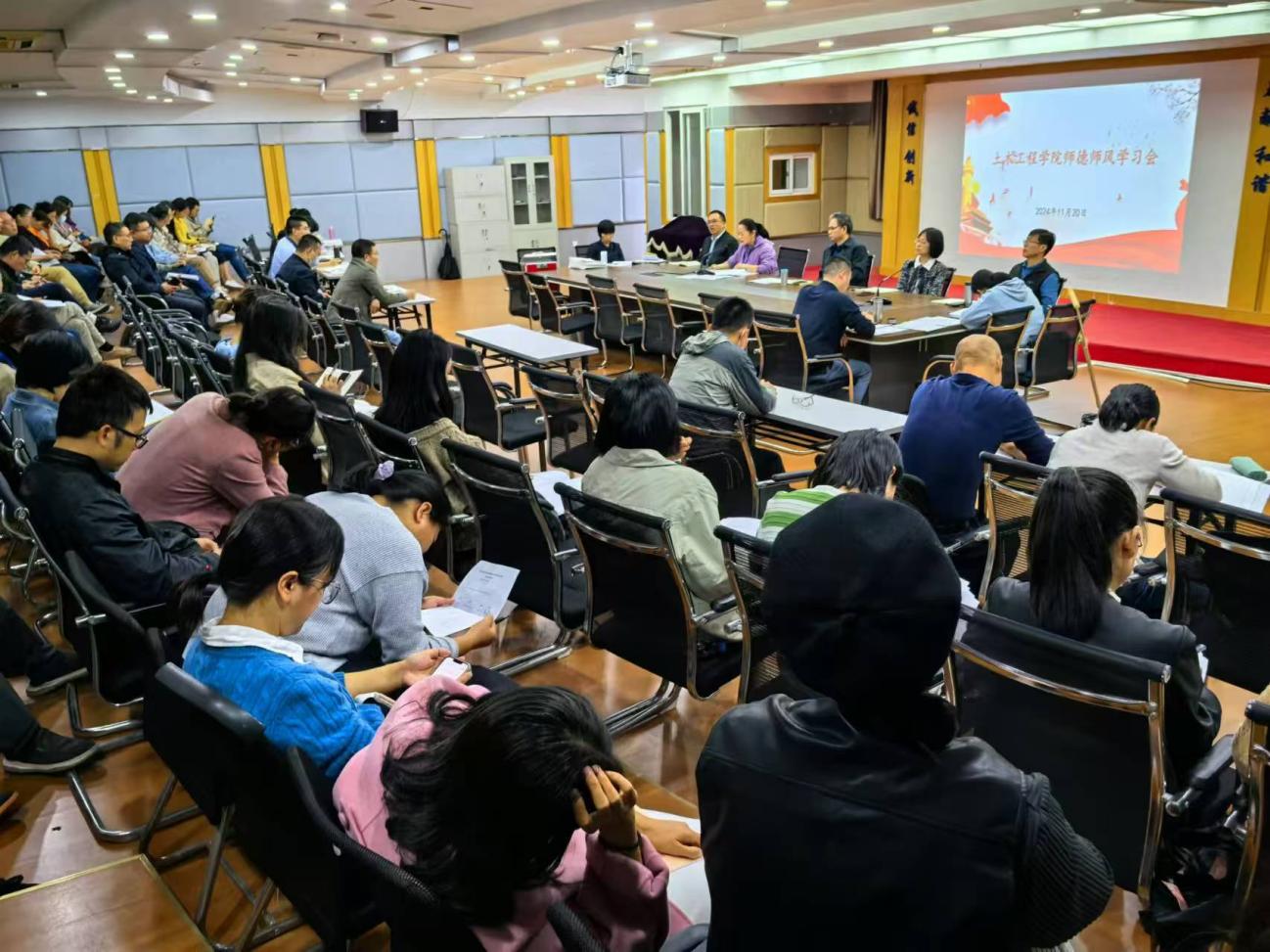 11月20日,土木工程學(xué)院在創(chuàng)新樓1007召開(kāi)師德師風(fēng)專題學(xué)習(xí)會(huì)。土木工程學(xué)院全體教職工參加本次會(huì)議,會(huì)議由黨總支書記高杰同志主持。