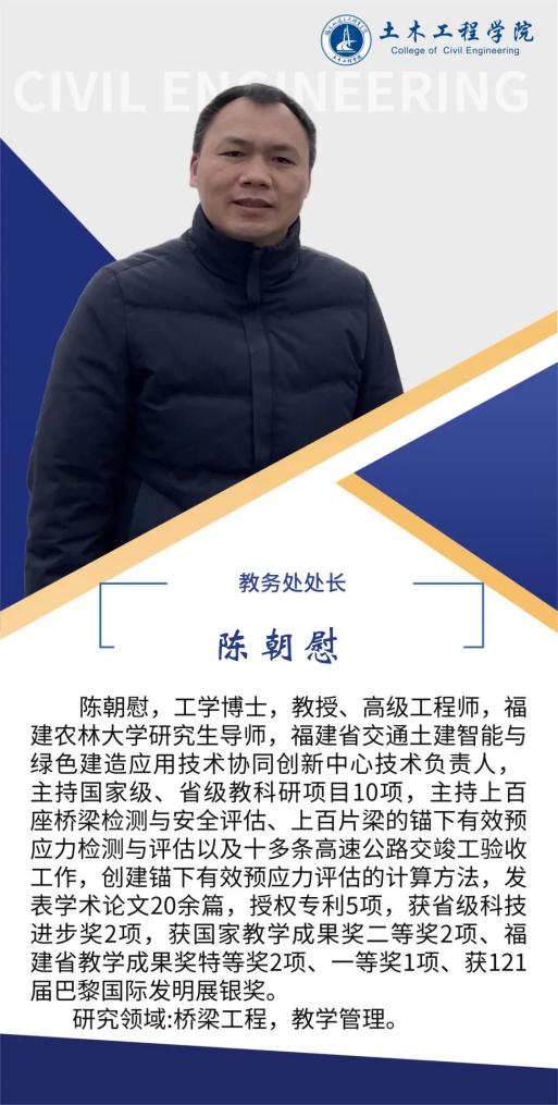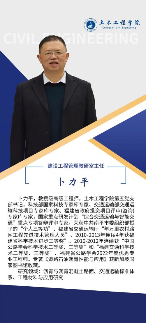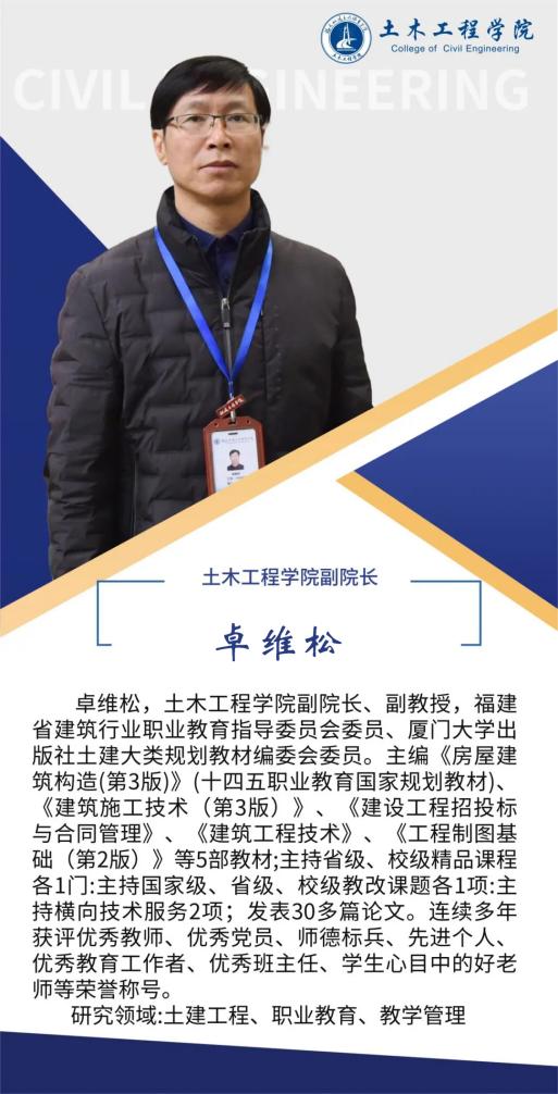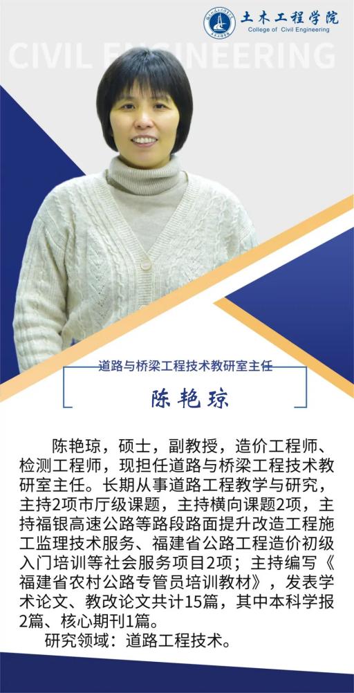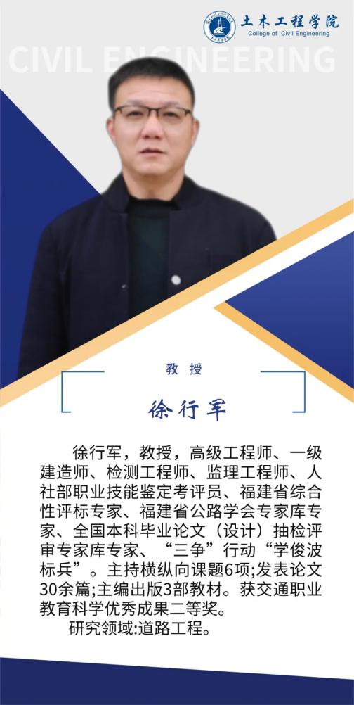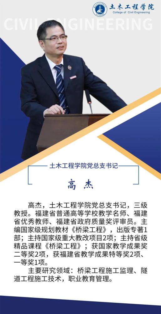 堅持黨建引領(lǐng),扎實推進(jìn)師資隊伍建設(shè),土木工程學(xué)院黨總支是全省先進(jìn)基層黨組織,第二支部為省級樣板支部,第四黨支部為省“雙帶頭人”教師黨支部書記工作室、全國黨建工作樣板支部,2024年入選全國高?!半p帶頭人”教師黨支部書記“強國行”專項行動團隊。土木工程學(xué)院現(xiàn)有專任教師90人,其中教授10人,副教授等副高職稱教師48人,具有博士學(xué)位教師10人,省級教學(xué)名師1人,省優(yōu)秀教師3人,省高職高專專業(yè)帶頭人1人,專任教師中具備雙師素質(zhì)的達(dá)到95%以上。另有一批專業(yè)領(lǐng)軍人才、大師名匠等組成的兼職教師隊伍,形成了高水平的“雙師雙能”教學(xué)團隊。在先進(jìn)基層黨組織示范帶動下,道路與橋梁工程技術(shù)專業(yè)教學(xué)創(chuàng)新團隊入選第三批國家級職業(yè)教育教師創(chuàng)新團隊,團隊成員參與獲得國家級教學(xué)成果二等獎2項,福建省教學(xué)成果特等獎1項,一等獎3項,教師參加省級以上教學(xué)能力比賽獲一等獎3項,二等獎5項。