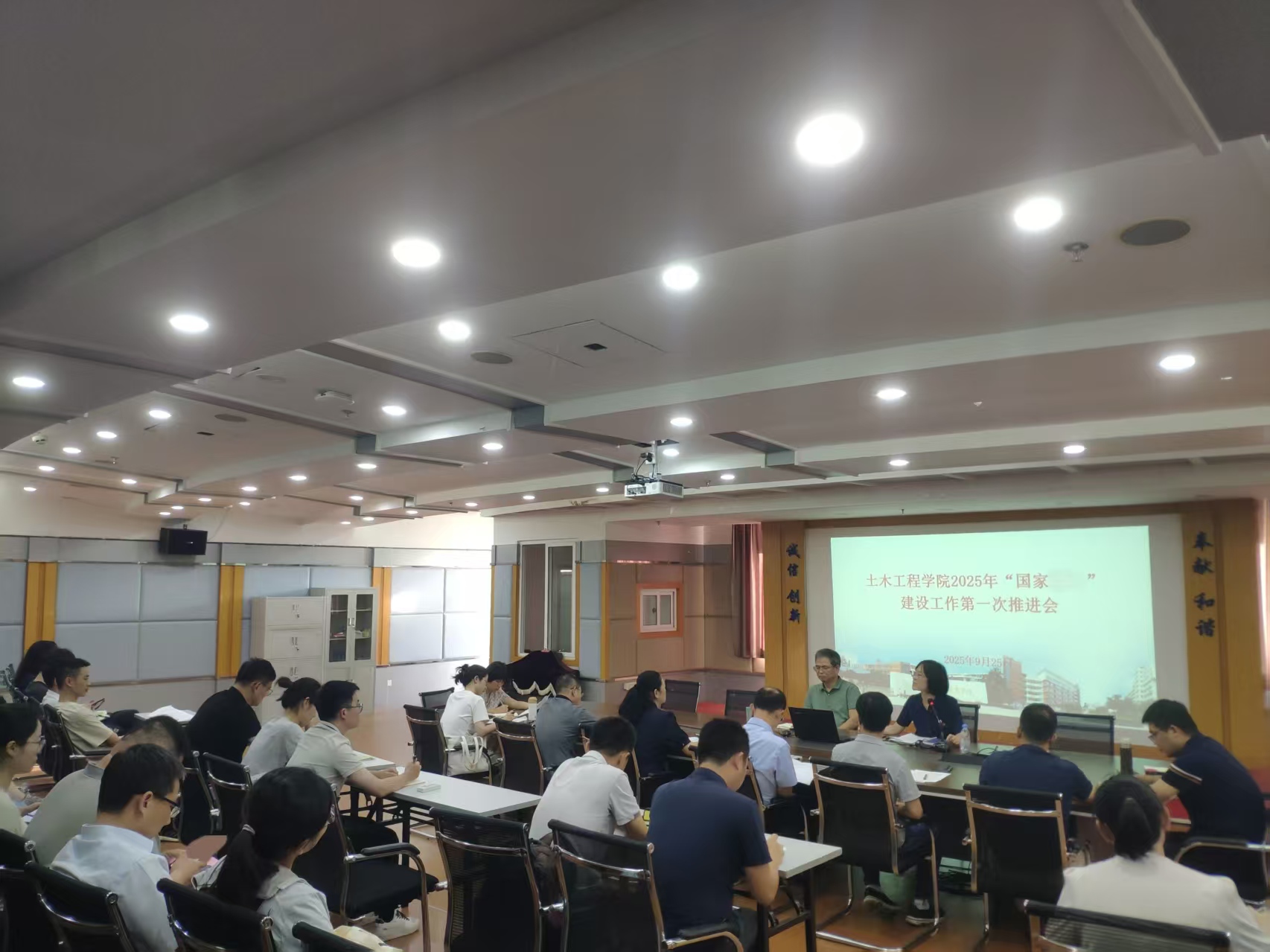 為確保國(guó)家重點(diǎn)建設(shè)項(xiàng)目高標(biāo)準(zhǔn)推進(jìn)、高質(zhì)量落地,進(jìn)一步明確任務(wù)分工、凝聚建設(shè)共識(shí),2025 年 9 月 25 日,土木工程學(xué)院組織召開國(guó)家重點(diǎn)建設(shè)項(xiàng)目推進(jìn)會(huì)。國(guó)家重點(diǎn)建設(shè)項(xiàng)目領(lǐng)導(dǎo)小組成員及項(xiàng)目全體參與人員參會(huì),會(huì)議聚焦項(xiàng)目建設(shè)核心任務(wù),部署關(guān)鍵工作,為下一階段建設(shè)劃定 “責(zé)任線” 與 “施工圖”。