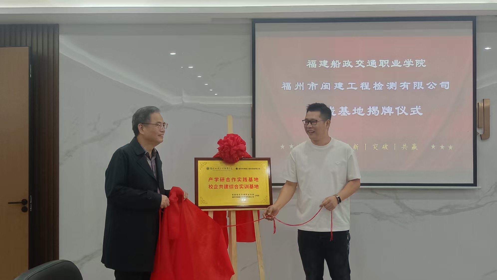 隨后,土木學(xué)院書記高杰與閩建檢測(cè)總經(jīng)理吳文岳共同為“校企共建綜合實(shí)訓(xùn)基地”揭牌。