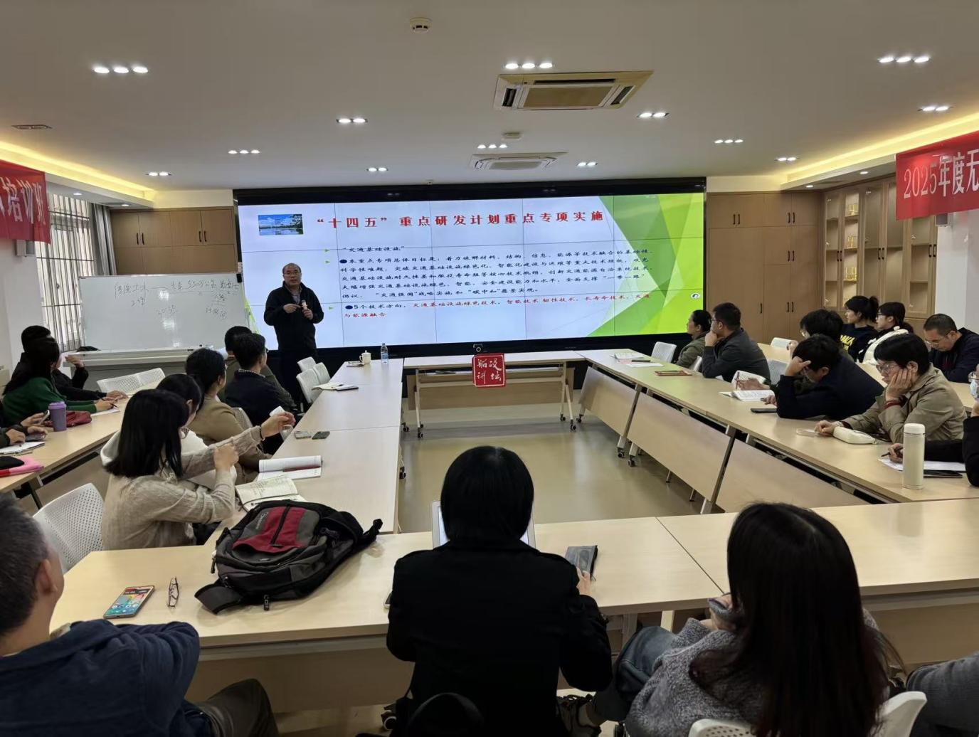 這場講座不僅是交通基建智能化創(chuàng)新成果與發(fā)展經(jīng)驗的集中展示,更是一堂厚植家國情懷、激發(fā)責(zé)任擔(dān)當(dāng)?shù)乃颊n堂。胡教授深入解讀了“建養(yǎng)并重”新階段的行業(yè)使命,從“十四五”“十五五”重點研發(fā)計劃的政策布局,到長春無線充電公路、蘇州“三合一”電子公路等標桿項目的技術(shù)突破,讓學(xué)院教師們既領(lǐng)略到中國交通基建的硬核實力與全球視野,更深刻認識到交通作為“興國之要、強國之基”的戰(zhàn)略意義。