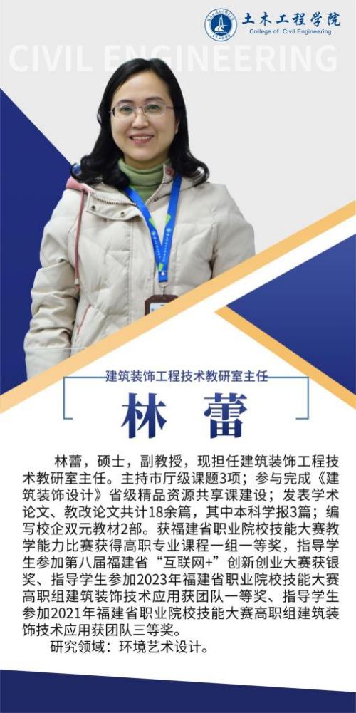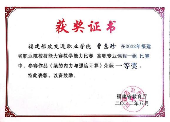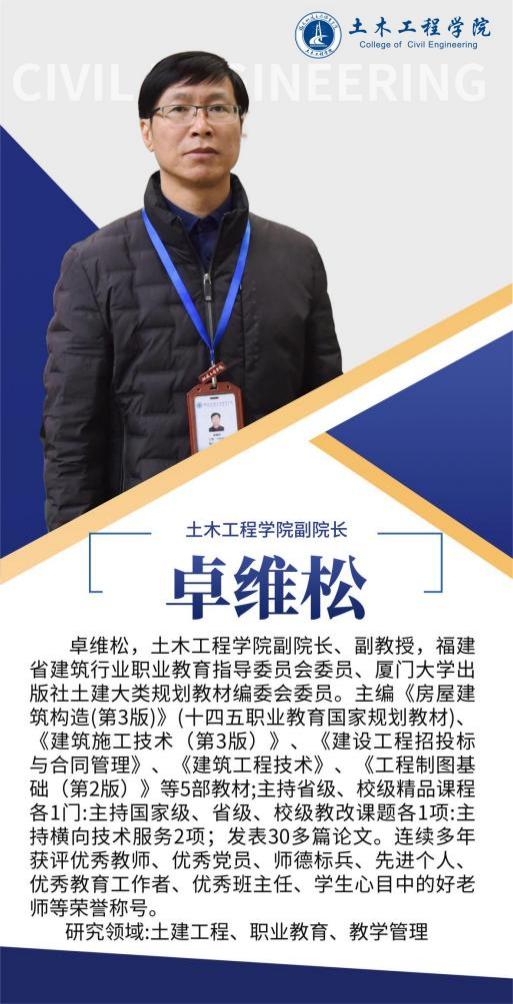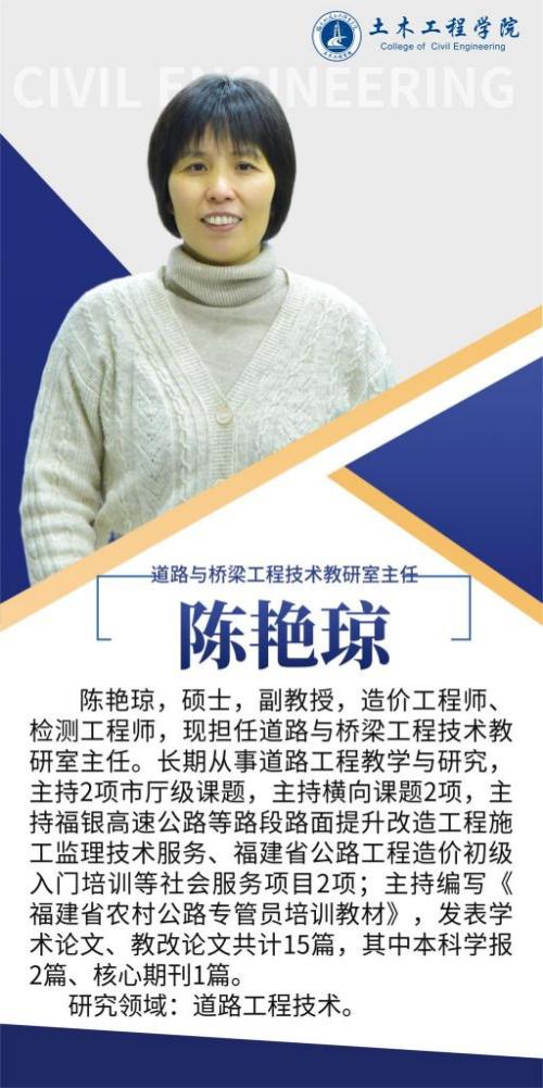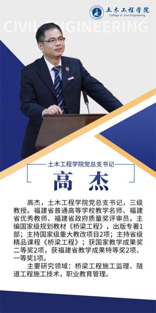 堅(jiān)持黨建引領(lǐng),扎實(shí)推進(jìn)師資隊(duì)伍建設(shè),土木工程學(xué)院黨總支是全省先進(jìn)基層黨組織,第二支部為省級(jí)樣板支部,第四黨支部為省“雙帶頭人”教師黨支部書記工作室,并入選全國(guó)黨建工作樣板支部。土木工程學(xué)院現(xiàn)有專任教師92人,其中副教授等副高以上職稱教師55人,具有博士學(xué)位教師10人,省級(jí)教學(xué)名師1人,省優(yōu)秀教師3人,省高職高專專業(yè)帶頭人1人,專任教師中具備雙師素質(zhì)的達(dá)到95%以上。另有一批專業(yè)領(lǐng)軍人才、大師名匠等組成的兼職教師隊(duì)伍,形成了高水平的“雙師雙能”教學(xué)團(tuán)隊(duì)。在先進(jìn)基層黨組織示范帶動(dòng)下,道路與橋梁工程技術(shù)專業(yè)教學(xué)創(chuàng)新團(tuán)隊(duì)入選第三批國(guó)家級(jí)職業(yè)教育教師創(chuàng)新團(tuán)隊(duì)立項(xiàng)(培育)建設(shè)單位名單,團(tuán)隊(duì)成員參與獲得國(guó)家級(jí)教學(xué)成果二等獎(jiǎng)2項(xiàng),福建省教學(xué)成果特等獎(jiǎng)1項(xiàng),一等獎(jiǎng)2項(xiàng),教師參加省級(jí)以上教學(xué)能力比賽獲一等獎(jiǎng)2項(xiàng),二等獎(jiǎng)1項(xiàng),三等獎(jiǎng)5項(xiàng)。