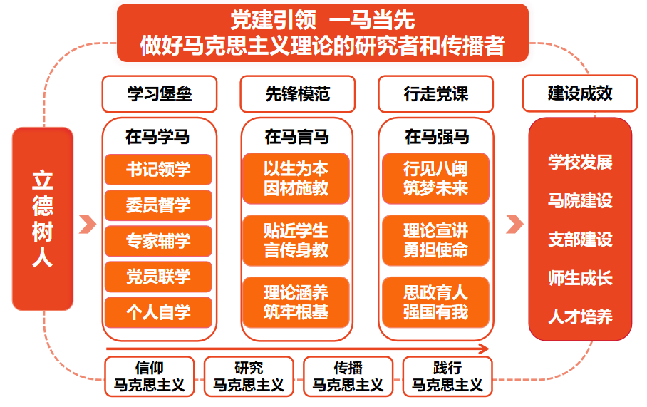 習(xí)近平總書記在學(xué)校思想政治理論課教師座談會(huì)上的重要講話中強(qiáng)調(diào):“思政課要解決學(xué)生理想信念問(wèn)題。要讓有信仰的人講信仰。對(duì)馬克思主義的信仰,對(duì)社會(huì)主義和共產(chǎn)主義的信念,只有首先在思政課教師心中扎下根,才能在學(xué)生心中開(kāi)花結(jié)果?!瘪R克思主義學(xué)院第一黨支部堅(jiān)持以習(xí)近平新時(shí)代中國(guó)特色社會(huì)主義思想為指導(dǎo),理直氣壯地信仰馬克思主義、研究馬克思主義、傳播馬克思主義、踐行馬克思主義,發(fā)揮思政教師作為馬克思主義理論學(xué)習(xí)者、研究者、傳播者和實(shí)踐者的專業(yè)優(yōu)勢(shì),體現(xiàn)思政課程作為立德樹(shù)人關(guān)鍵課程的地位,將黨建的“軟實(shí)力”轉(zhuǎn)化為推動(dòng)教育教學(xué)高質(zhì)量發(fā)展的“硬支撐”,彰顯黨支部“在馬學(xué)馬、在馬言馬、在馬強(qiáng)馬”的工作格局。