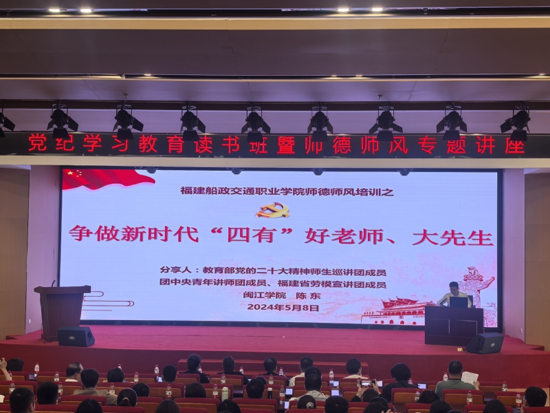 5月8日,學(xué)院黨委舉辦黨紀(jì)學(xué)習(xí)教育讀書班暨師德師風(fēng)專題講座,全院副科級(jí)及以上干部,支部書記、副書記,組織員等參加了學(xué)習(xí)。
