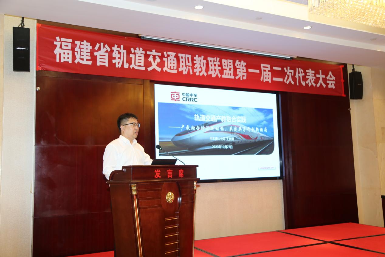 10月27日,福建省軌道交通職業(yè)教育聯(lián)盟第一屆二次代表大會(huì)在泉州舉行。中車唐山機(jī)車車輛有限公司紀(jì)委書記周新遠(yuǎn),福建船政交通職業(yè)學(xué)院黨委委員、副校長(zhǎng)陳艷紅,中車唐山機(jī)車車輛有限公司戰(zhàn)略發(fā)展部部長(zhǎng)王貴國(guó),泉州中車唐車軌道車輛有限公司總經(jīng)理姚小偉,泉州中車唐車軌道車輛有限公司書記、副總經(jīng)理程利剛,福建省軌道交通職教聯(lián)盟理事長(zhǎng)、福建船政交通職業(yè)學(xué)院軌道交通學(xué)院院長(zhǎng)陳天炎等相關(guān)單位領(lǐng)導(dǎo)以及來自省內(nèi)外50余位軌道交通企業(yè)、院校、行業(yè)協(xié)會(huì)等單位代表參會(huì)。