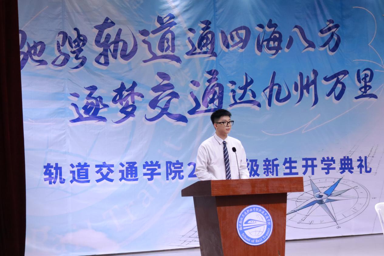 新生代表林智賢則帶著同齡人的共鳴,道出了25級新生的心聲。他分享了自己選擇軌道專業(yè)的初心,表達了對未來學習生活的期待,并代表全體新生承諾:將以勤勉踏實的態(tài)度,學好專業(yè)知識,不負師長期望,努力成長為能為軌道行業(yè)貢獻力量的青年。