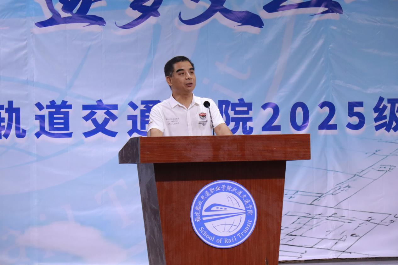 “希望同學們在大學期間,結交兩個‘摯友’——一個是操場,一個是圖書館?!避壍澜煌▽W院院長陳天炎在致辭中,用親切的比喻為新生指引方向。他鼓勵同學們走出宿舍,在操場揮灑汗水、強健體魄;走進圖書館,在書頁間汲取知識、開闊眼界,以健康的身心與扎實的學識,為未來的軌道事業(yè)打下堅實基礎。
