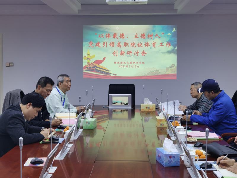 3月12日下午,通識教育學院召開“以體載德、立德樹人”黨建引領(lǐng)高職院校體育工作創(chuàng)新研討會,會議邀請原福建省教育廳體衛(wèi)藝語處正處級調(diào)研員江仁虎、集美大學體育學院鄭旭旭教授、福建師范大學體育科學學院張涵勁教授、福州大學體育部彭雪涵教授、福建農(nóng)林大學體育部黃國龍教授、福建醫(yī)科大學體育部董華教授等專家,學院黨委書記張海明、通識教育學院院長方儒欽、副院長金晶晶和郭建忠參加會議。