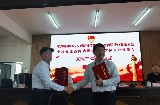 在黨建共建會議上,通識教育學院院長、閩清縣教育局副局長方儒欽希望借此機會,實現(xiàn)雙方良好互動,做到資源共享、工作互動、優(yōu)勢互補、發(fā)展共贏,共同提高服務基層、服務師生的能力,促進雙方工作創(chuàng)新發(fā)展。通識教育學院金晶晶副院長和閩清職專陳友水校長分別介紹本單位情況及本次活動的意義,表示希望通過本次主題黨日活動,推動黨史學習教育更加入腦入心,進一步增強基層黨組織的凝聚力和戰(zhàn)斗力,同時以雙方共建結對簽約為契機,構建院校支部結對幫帶、雙向促進、共同提高黨建格局。隨后,雙方深入交流了黨史學習教育體會,并探討以教師送教、活動共辦等為手段,完善中、高職院校之間互動、共同發(fā)展的模式和途徑,共享優(yōu)質教育資源,提高整體辦學質量。會上,雙方簽訂了黨建共建協(xié)議。