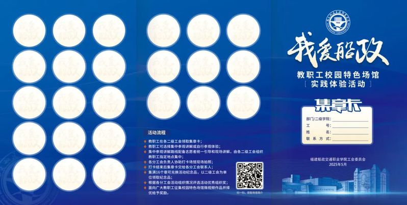活動以“創(chuàng)新船政、質(zhì)量船政、文化船政、開放船政”理念為牽總,學(xué)院校史館、三全育人館、嚴復(fù)史績館、黨建思政船政文化研學(xué)中心“三館一中心”為組團,青年服務(wù)中心、“一站式”學(xué)生服務(wù)中心、職工之家“兩區(qū)三陣地”為輻射,航海技術(shù)、安全技術(shù)與管理兩大“雙高”專業(yè)群為龍頭,交通土建、汽車運用、通用航空、軌道交通、交通運輸服務(wù)、機械與智能制造、信息技術(shù)與智慧交通為支撐的9大現(xiàn)代綜合立體交通專業(yè)集群16個特色實驗實訓(xùn)基地為延伸,采用集章打卡互動形式,通過沉浸式、體驗式參觀方式,教學(xué)相長、組團互學(xué)研學(xué)實踐,充分活化學(xué)院“愛國強技、產(chǎn)學(xué)一體、精益求精、趨變求新”職教資源和辦學(xué)特色,充分激發(fā)學(xué)院教職工的自豪感、幸福感和獲得感,團結(jié)引領(lǐng)廣大教職員工與學(xué)院發(fā)展同頻共振,與偉大時代進步同向同行。