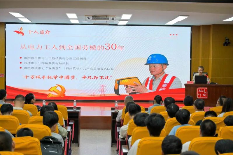 講座中,黃站長(zhǎng)以質(zhì)樸語(yǔ)言講述30年電力一線堅(jiān)守故事:暴雨夜蹚水搶修、臺(tái)風(fēng)天獲市民撐傘,從老一輩職工步行交接班的勞動(dòng)精神啟蒙,到帶領(lǐng)團(tuán)隊(duì)攻克“龍王”臺(tái)風(fēng)136萬(wàn)戶搶修難題。他結(jié)合工作室 “四融四帶四庫(kù)”體系,分享“刀片環(huán)削法”等創(chuàng)新成果及榜樣傳承力量,詮釋“0.01毫米級(jí)”工匠精神的專注與嚴(yán)謹(jǐn)。最后,他以“崗位是時(shí)代錨點(diǎn)”勉勵(lì)師生,將工匠精神融入日常,在平凡中錨定不凡坐標(biāo),以匠心點(diǎn)亮奮斗之路,為中國(guó)制造添磚加瓦。