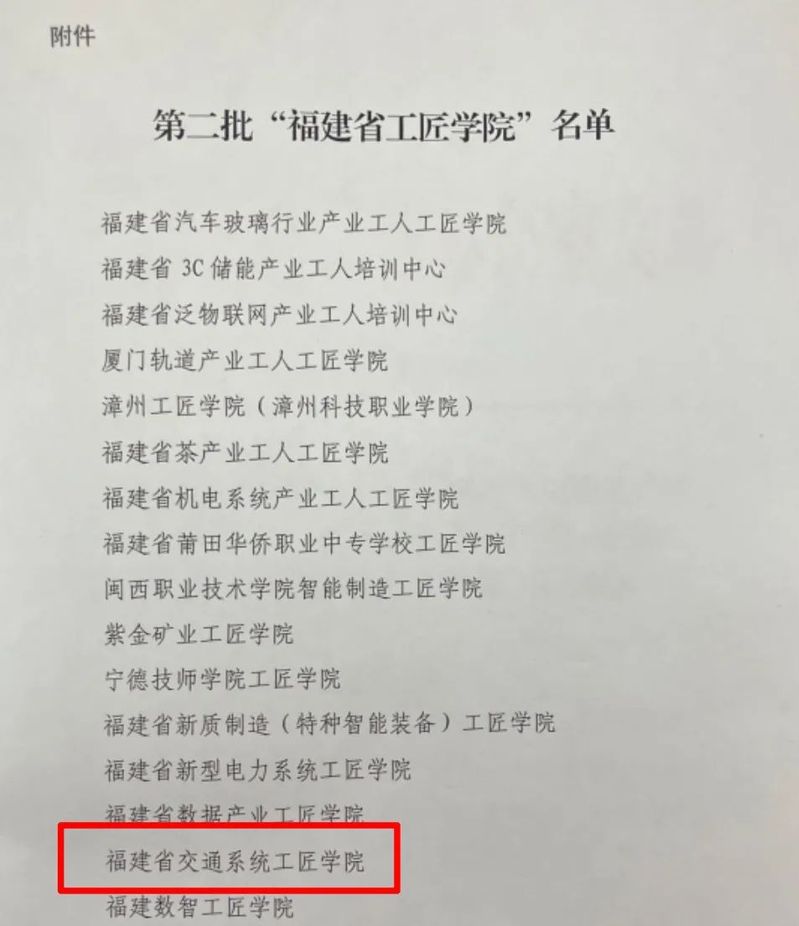 近日,福建省總工會公布16家第二批省級工匠學院名單。我院作為福建省唯一一所覆蓋海陸空軌“四位一體”9大現(xiàn)代綜合交通專業(yè)集群的交通類職業(yè)院校,申報的“福建省交通系統(tǒng)工匠學院”被確定為第二批“福建省工匠學院”。