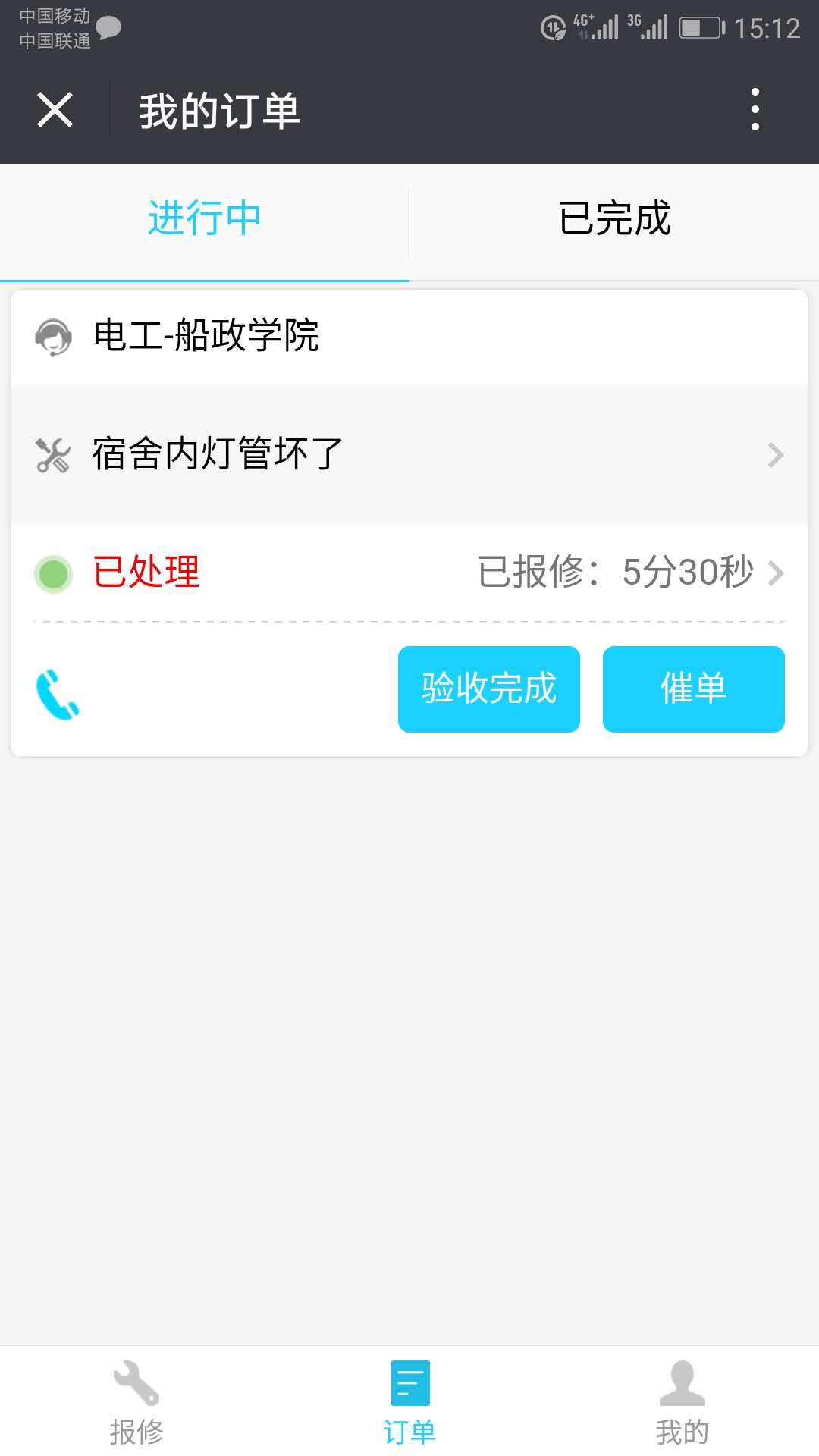 4、 師傅上門維修完成后點(diǎn)擊驗收完成后確認(rèn)已完成。